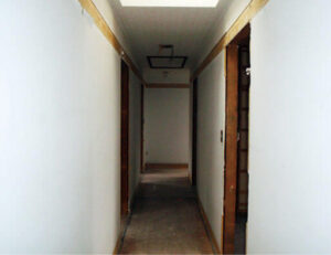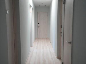 ▲2階廊下。クロスに加え、床やドアなども白基調に統一した