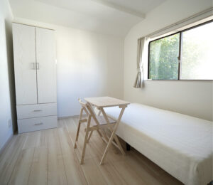 7LDKという元々の部屋数を生かし、各部屋を個室化して居住スペースをつくった。家全体は白で統一。「白は汚れが目立つ分、清掃が行き届きやすい。定期清掃の際に状態をすぐ確認することができます」と田上社長は話す。また共用ごみ箱は設けず「各自が自分のごみを管理する」規則を徹底。傘立てや靴箱も区画を明確に分け、共有スペースの混乱を防いだ。