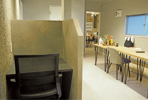 このターゲット設定は見事に当たった。現在は学生から20代後半の芸術家を含め幅広い層が入居している。家賃は共益費込みで7万円前後。この家賃には1階にある共用部分の利用料も含まれている。こうした価値付けもあって、入居待ちもできる人気物件になっている。