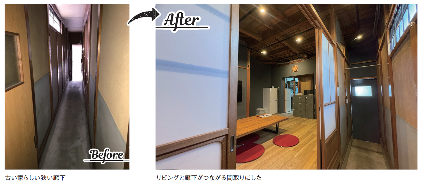この建物は、同社が運営するシェアハウスの中で最も築年数が古い。また手がけた中では木造の建物も珍しかった。そこで伊藤社長は、古民家特有の古さを欠点ではなく個性と捉える「和モダン」を再生のコンセプトに据えたという。