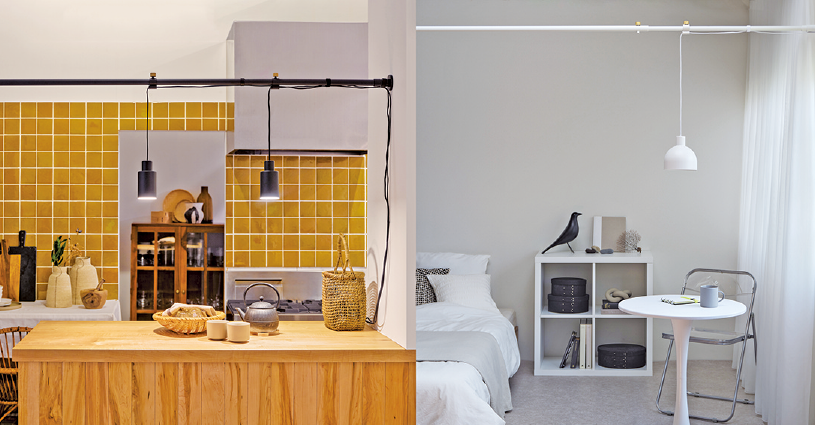 突っ張り棒のシリーズ「Tension Rod(テンションロッド)」に取り付けることで、必要な高さと位置に照明を設置可能となる。照明用ソケットやダクトレールの取り付け工事は不要。最大3mになる突っ張り棒「Tension Rod Pro(プロ)」を使用すれば、ランプを設置する場所の選択肢が広がるだろう。