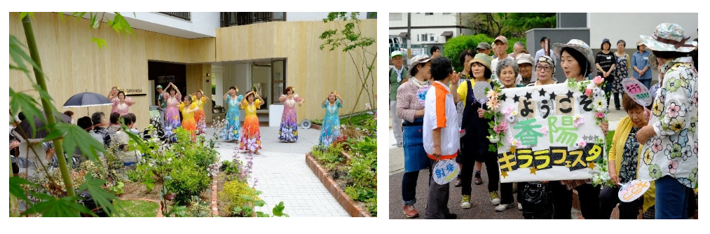 人が人を変え、「共に」という気持ちが育まれていく。ハードの改修が終わる頃には、温かいコミュニティーの土壌が出来上がっていました。完成後、ガーデンは住民たちの憩いの場となり、フラダンスや紙芝居、お祭りなど、さまざまな活動が自然発生的に生まれていったのです。