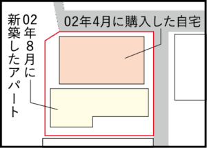 早速、建物を庭に建てることを想定し、広い土地でかつ敷地の隅に家が立っている物件を探した中島オーナー。02年4月には計画していた通りの物件を見つけ出して購入し、引っ越した。さらに同年8月、予定通り庭部分にアパートを新築した。