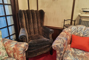 - 応接室の茶色の大きな1脚は、100年にわたって同じ場所に置かれている