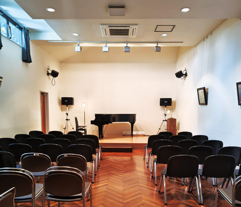 増築された音楽ホールでは、コンサートを楽しむことができる