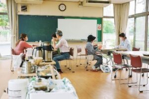 また、コミュニティーカフェ「みどりtoゆかり」では、 宗像で採れた野菜を中心とした、身体に優しい「おばんざいランチ」を提供しています。近くに独居高齢者も多いため、リーズナブルで栄養満点のメニューを心がけました。メニュー開発から試行錯誤し、ネパール出身の人との料理教室や七輪会など、カフェを中心に地域の交流を生み出しています。