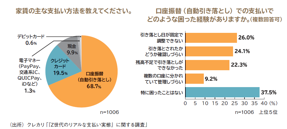 家賃のクレジットカード払いを可能にするサービス「クレカリ賃貸」を運営するクレカリ(東京都中央区)は、2025年10月21~23日の期間に「『Z世代のリアルな支払い実態』に関する調査」を実施。一人暮らしをしていて、自身で生活を担っている20~29歳までのZ世代の男女を対象に調査を行った。