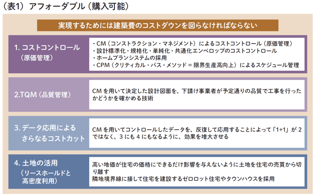 では、これまでに説明してきたような住宅をどのようにしてアフォーダブルなものにしていくのかということについて説明します。