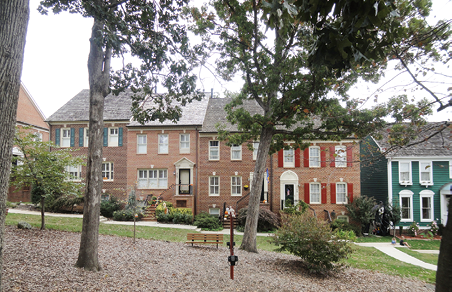 丘陵地の傾斜を生かした4連タウンハウス(メリーランド州ケントランズ)
