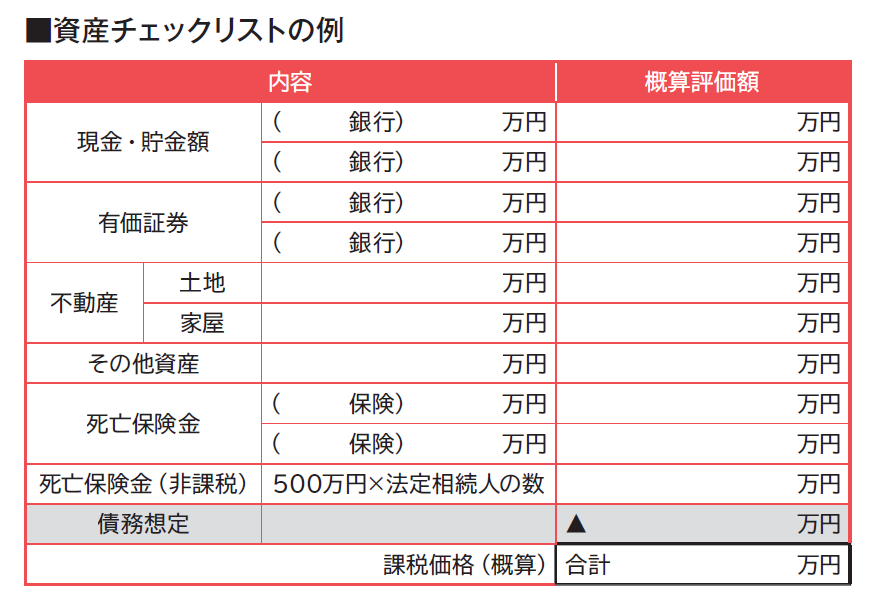 より資産価値の高い資産を残すためには、まず現在の資産の状況を把握しておかなければならない。均等に分けにくい不動産は特に、事前に残すべき財産かどうかを判断しておく必要がある。