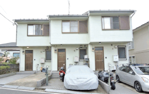 1棟目は横浜市戸塚区にある物件で、219㎡の土地に3戸のメゾネットが立つ。駅から徒歩 分とやや遠いものの、駐車場が広く確保され、それぞれ専用庭がある点にメリットがあると考え、4200万円で購入し、1戸あたり9万円で貸し出している。