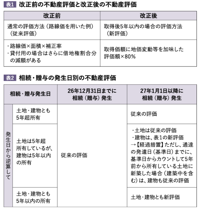 改正の適用は27年1月1日からと1年程度の余裕がある。この間に生前贈与を行った場合は、不動産は従来の評価となる(ただし、後述する「総則6項」による時価課税の可能性はある)。