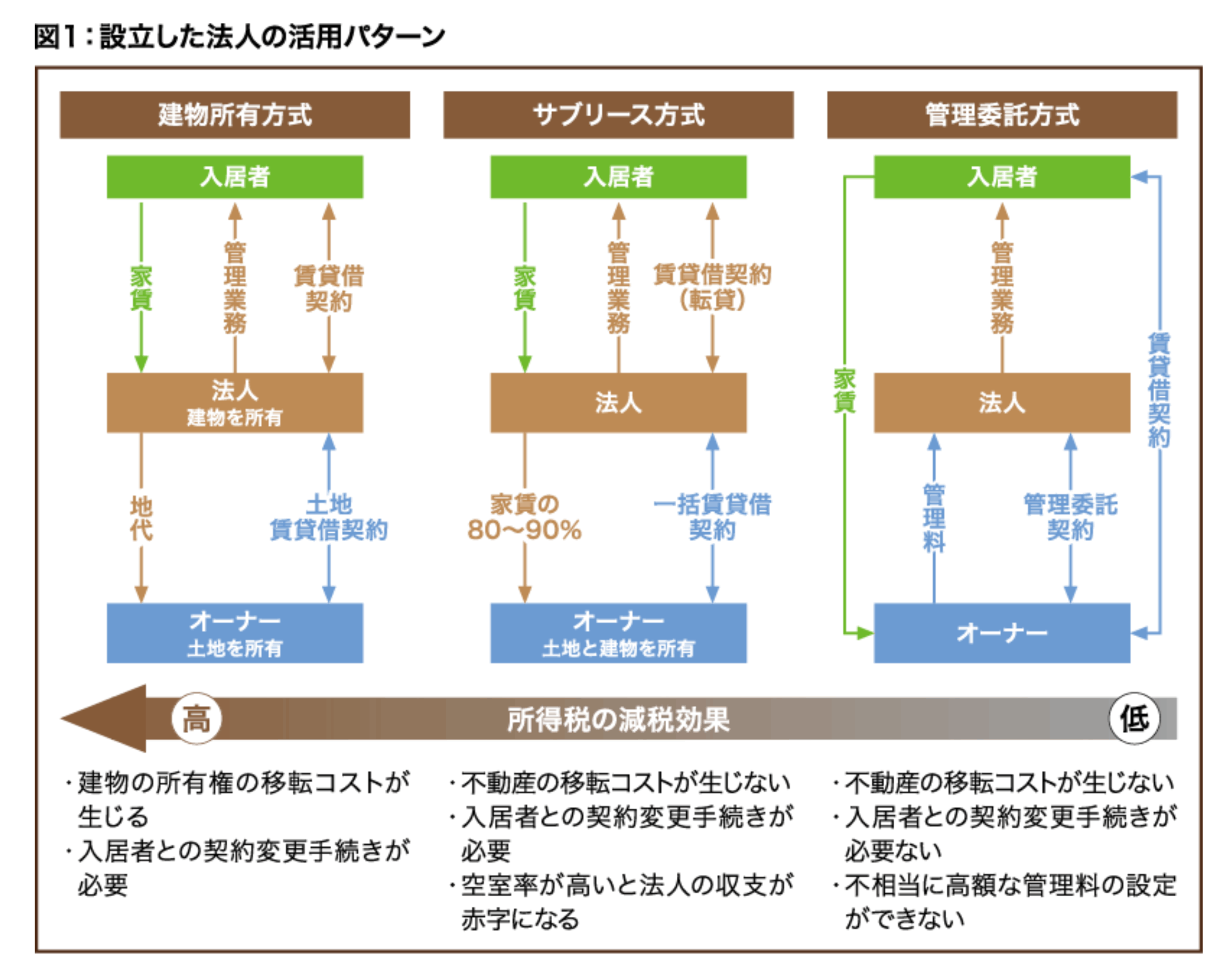 賃貸経営においてよく知られた法人の活用方式には、主に三つのやり方がある。