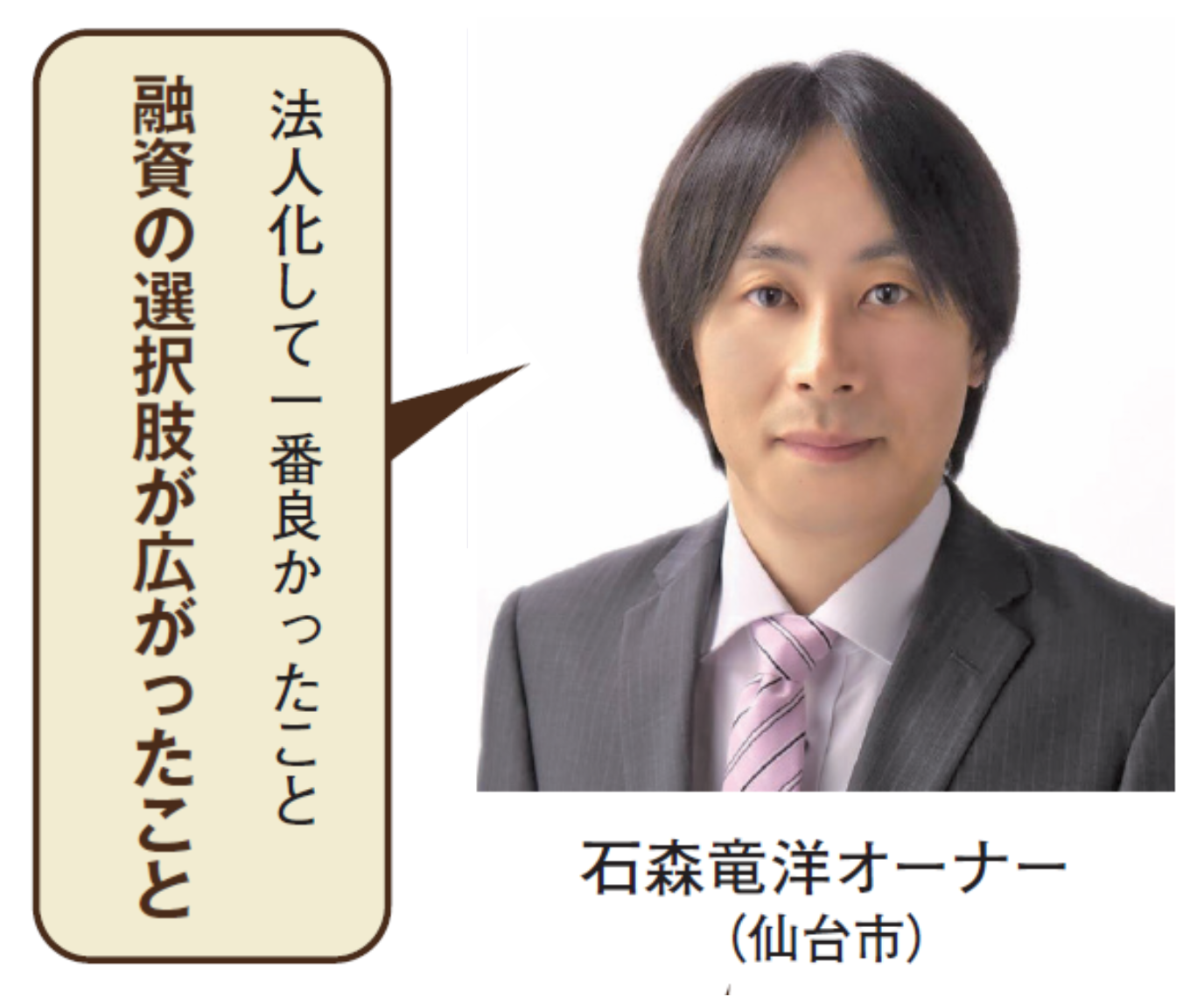 「所有物件の一部は車で1時間半ほど離れていて、営業エリアがネックになり金融機関の選択肢が狭まっていました。法人化したことでこの営業エリア問題がかなり緩和されました」(石森オーナー)