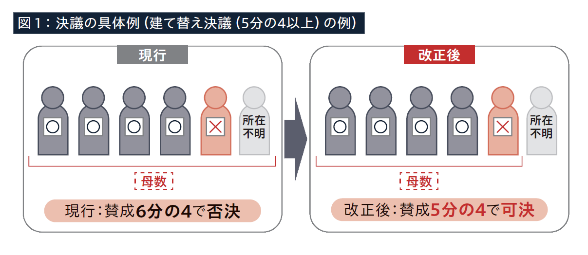 集会の決議において、区分所有者が不明またはその所在を知ることができない場合は、改正前の区分所有法(以下、旧法)ではその議決権は行使されないため、反対として扱われていた。そのため決議が成立せず、日常の管理運営などが滞ることがあった。