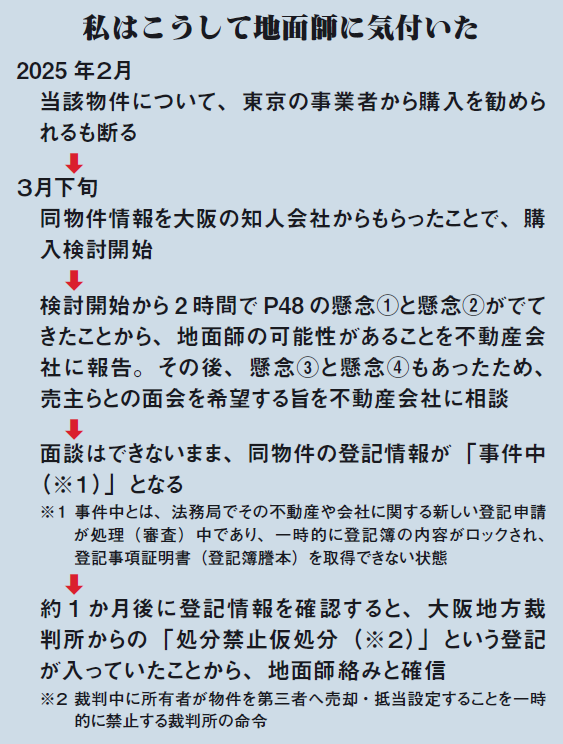 しかし、取得にあたって行った売主調査で、次々と不審点が浮かび上がってきたという。特に懸念に感じたのは以下の4点だった。