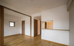 - ▲仕切り戸を寄せることで、LDKと洋室をつなげて使うことができる