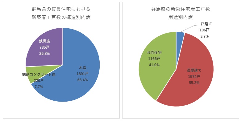 また、賃貸住宅の構造別に見ると木造が1万383戸、構成割合で51.3%となり最多。次いで鉄骨造が6174戸、鉄筋コンクリート造が3661戸の順でした。