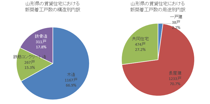 構造別では木造が1167戸、鉄骨造311戸、鉄筋コンクリート造267戸となり、東北エリア内の他県と同様、木造が最も多くの割合を占めています。