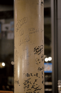 左:1Fの柱は映画関係者たちのサインですでにいっぱいだ