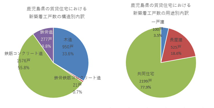 鹿児島県の新築賃貸住宅では共同住宅が中心となる