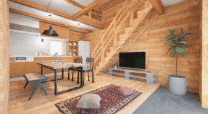 同社が手がける物件においては、無垢材の使用のほかにも吹き抜け天井やウッドデッキ、まきストーブ、土間など、賃貸住宅ではあまり普及していない建材や設備を提案する。