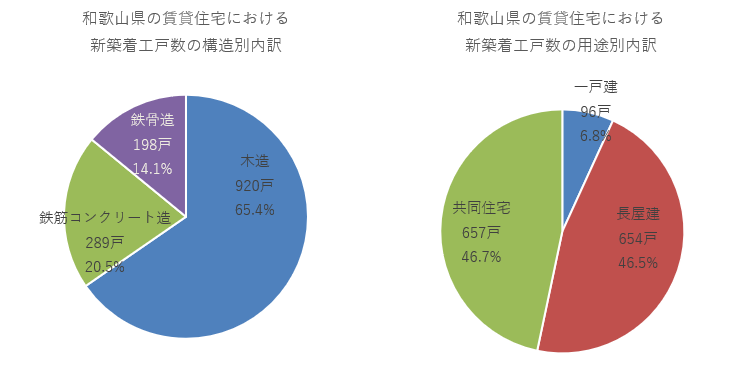 和歌山県では新築賃貸住宅での土地活用において長屋建てのシェア率が高い傾向