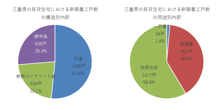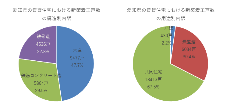 愛知県の新築賃貸住宅での土地活用、木造と共同住宅がそれぞれ半数を占める