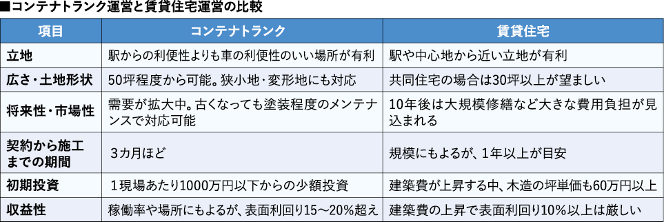 一方、賃貸住宅と異なる点としては、オープン後すぐに満室になりにくい点だ。業界的には約1年で満室を目指す事業者が多い。2年目以降の平均稼働率は85%程度という。ただし、一度利用すると長期で契約するケースも多いため、安定しやすい点がトランクルーム事業のメリットとして挙げられる。