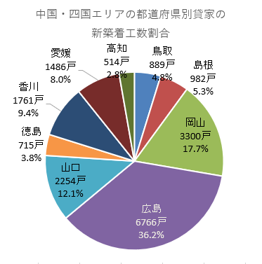 中国・四国エリアでの新築賃貸住宅による土地活用、広島県が最多