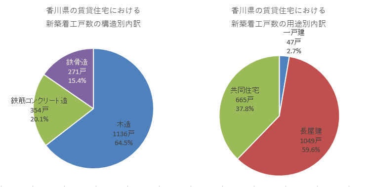 香川県で24年に着工した新築賃貸住宅の戸数は1761戸でした。香川県の新築着工総戸数4828戸における構成割合では36.5%となっています。